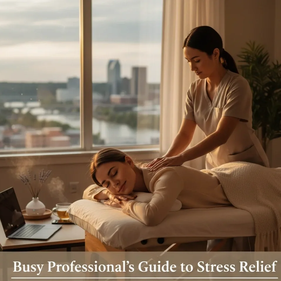 Licensed pros. Customized sessions. No traffic. No parking drama. No perfumey oils that scream “I just walked through a perfume store!”. Just calm.